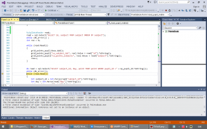 Теперь не могу понять ошибку на скриншота. Какой где датаридер открыт? Ошибка в private void load_pupil_matrix() после ввода пароля ученика. Отрисовывается грид с уроками, а оценки не вставляет. Запрос сырой отрабатывает правильно и выдает 2 строки.
