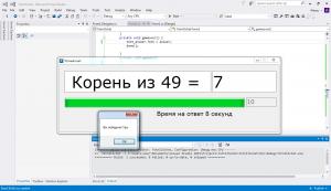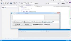 Дополнил программу двумя командами для устного счета: Возведение в квадрат и вычисление корня. Так же добавил таймер. На каждый ответ есть 10 секунд, если пользователь не укладывается, то он проиграл