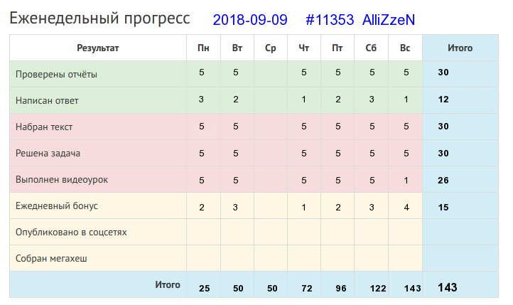 Расскажи о своих успехах за эту неделю и напиши планы на следующую