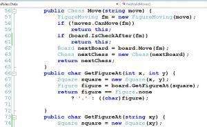 Прошла еще одна часть курса "Шахматы on-line", посвященная шахматным алгоритмам. Вообще-то на этом портале я уже проходил один шикарный шахматный курс "Микро шахматы". Честно говоря, решившись на курс "Шахматы on-line", я был настроен, что, по части алгоритмов, буду скучать, так в основном я уже с ними знаком но микро-шахматам. К счастью, мои опасения не оправдались. Здесь я у видел совсем другой подход. В полной мере было использовано Объектно-ориентирванное программирование. В рамках простого консольного приложения были созданы различные классы и затем показано их взаимодействие. Причем волшебство не возникло вдруг, неожиданно. Оно нарастало постепенно, начиная с простых конструкций до довольно сложных взаимосвязей. Особенно хочется отметить красоту и изящество полученного кода! Остается только удивляться, как до это всего можно додуматься. Но это, видимо, приходит с опытом. По рекомендации Игромистра мне удалось реализовать фиксацию одну из разновидностей ничейных результатов, когда на доске остаются одни короли. Теперь я еще больше заинтригован. И хочется поскорее узнать, как сделанные наработки можно будет использовать в системе Unity.