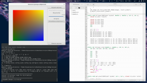 Научился применять алгоритм билинейной интерполяции для изменения размера изображения. Создал изображение 2x2, увеличил его методом ближайшего соседа (верхний скриншот) и методом билинейной интерполяции(нижний скриншот).