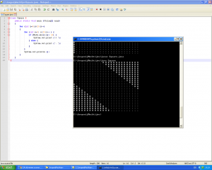 Научился: Теперь умею хоть с закрытыми глазами компилировать и запускать программу через консоль. Трудности: Мой узор на 2 скрине (по мне так напоминает четвертинку круга :)