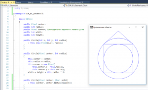 Как вычислить расстояние между двумя пикселями? Есть специальная формула, которую можно разместить в структуру Pixel. Теперь мы сможем создать ещё один конструктор окружности по центру и любой точке на окружности.