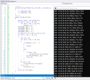 Написали метод вывод в нотации fen.