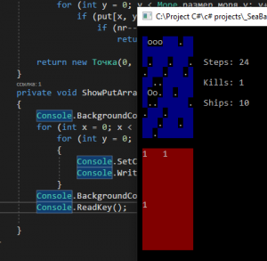 Алгоритм искусственного интеллекта для игры в Морской бой состоит из двух этапов: 1. нанесение ударов по шаблону для поиска 4-палубного и 2-палубных. 2. добивание раненного корабля и пометка клеток вокруг потопленного корабля. На этом уроке разберём и реализуем второй этап.