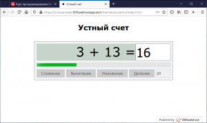 Задание: Сделать тренажёр устного счёта по основным арифметическим операциям.