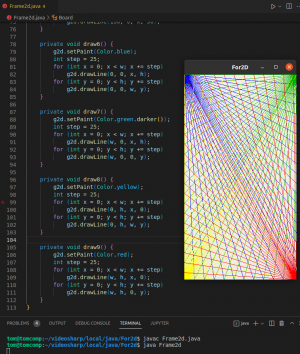Научился: Написал методы draw6, draw7, draw8, draw9 для рисования лучей из 4 углов, получилась хорошая практика работы с циклами.