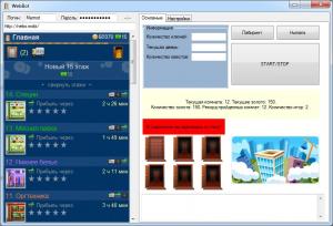 Немного сменил расположение кнопок. Добавил картинку игры. И еще создал мини-игру. Перед вами 6 дверей, 4 пустых комнаты, 1 с золотом и одна со стеной. Вам нужно двигаться по ним пока вы не врежетесь в стену. Вся статистика игры выводится + информация о текущей открытой двери. Рекорд золота и пройденных комнат сохраняется в настройках проекта. После проигрыша вы просто нажимаете на любой двери, они все закрываются и можно начинать новую игру. Почему это, а не играться с интерфейсом? Просто когда бот работает, зачем нам просто сидеть сложа руки? Можна сыграть в мини-игру!)