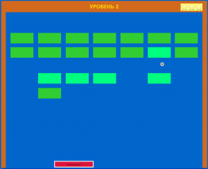 • Комментарии: Добавила жизни. Сделала тип кирпичиков, которые при первом ударе шарика меняет цвет, при втором выбиваются.