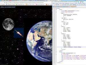 Научился: Располагать объекты с position: absolute; Трудности: Привести в движение объекты в космоме Кто хочет посмотреть мою работу в движении прошу заходить на http://tinklavimas.tekashnik.ru/kosmos.html