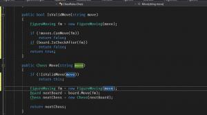 Научился: Мне кажется, что красивее и понятнее было бы назвать метод "ХодНеВалиден" и инвертировать логику. Если ход не сделать или после хода будет шах - значит ХодНеВалиден, значит return this.