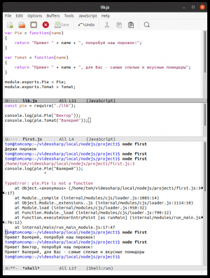 Научился: Создала библиотеку lib.js; подключила эту библиотеку к исполняемому файлу first.js; добавила в исполняемый файл новые функции и сделала их доступными.