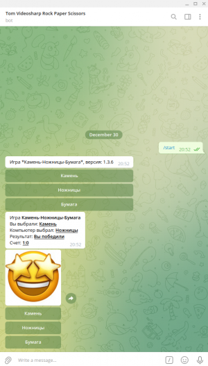 | На этом уроке мы реализуем вывод картинок в чат бота в зависимости от результата игры | |||||