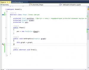 Выдержка из отчёта Ларисы по завершению курса. 1) Получила представление о методах ООП - инкапсуляции, полиморфизме и наследовании. Эти три "кита" позволяют изменять и усложнять программы, добавляя в них новые возможности; 2) Научилась рисовать простые геометрические фигуры; 3) Создавать базовые и производные классы; 4) Создавать структуры и работать с пикселями; 5) Создавать фигуры из массива простых фигур в том числе и в цвете; 6) Передвигать простую фигуру; 7) Создавать класс объектов Sprite, являющийся производным от базового абстрактого класса Shape, а в нем список List, который содержит произвольное число фигур и функцию, которая добавляет фигуру, а также метод Move, который двигает её; 8) Освоила BreakPoint, который дает возможность проследить переходы в классе и связи между классами; 9) Познакомилась с абстрактыми и виртуальными методами в абстрактном базовом классе и методами override в производных классах. Совокупность этмх методов позволяет передвигать сложные фигуры как целое.